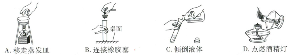 B(×)连接橡胶塞和试管时,不能把试管放在桌面上再使劲塞进塞子,以免压破试管,且手不能放在导管上。
