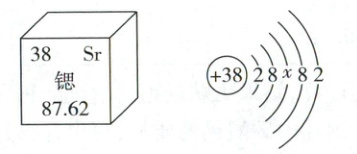 B(√)在原子中,质子数=核外电子数,故$38 = 2 + 8 + x + 8 + 2,x = 18$。
