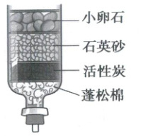 5 B 小卵石能过滤除去较大的固体颗粒,石英砂能过滤除去较小的固体颗粒。活性炭具有吸附性,不仅可以滤去水中的不溶性杂质,还可以吸附一些溶解的杂质,除去异味。蓬松棉主要起到支撑的作用,也能起到过滤作用。