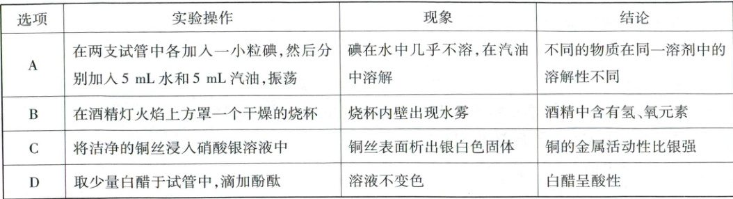 )A.实验中既有物理变化又有化学变化
