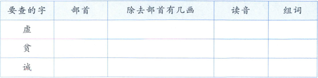 3.虍 五 xū 虚心 贝 四 pín 贫困 讠 六 chéng 诚实
