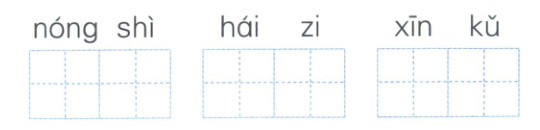 1.请根据拼音,在田字格里正确书写描述右边图画内容的词语。(8分)