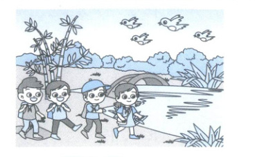 郊外真美呀!( )的小河上有一( )弯弯的小桥,小鸟在空中( )地飞翔。河边有一( )青翠的竹子。( )完作业后,一( )“红领巾”来到这里( )风景。