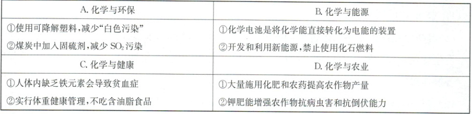 11. (2025·烟台)2025 年全国两会聚焦环保、能源、健康、农业等领域的可持续发展,化学在其中做出了重要贡献。下列各组对相关主题知识归纳完全正确的是 (