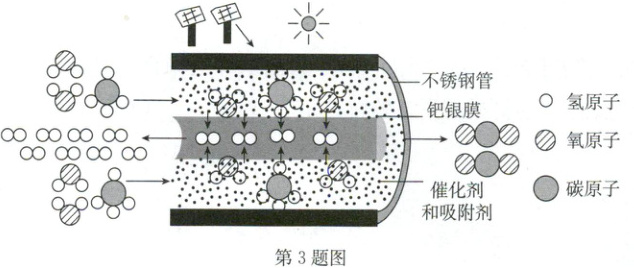 (6)可持续制氢,在较低温度下制氢,节约能源,钯银膜实现氢气和二氧化碳分离,提高氢气产率,协同利用清洁能源(合理即可)