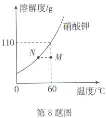 8. 如图是硝酸钾的溶解度曲线。下列说法不正确的是(