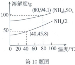 10. (2025·深圳)(NH₄)₂SO₄和 NH₄Cl 是两种常见的氮肥,二者溶解度曲线如图所示,下列说法正确的是(