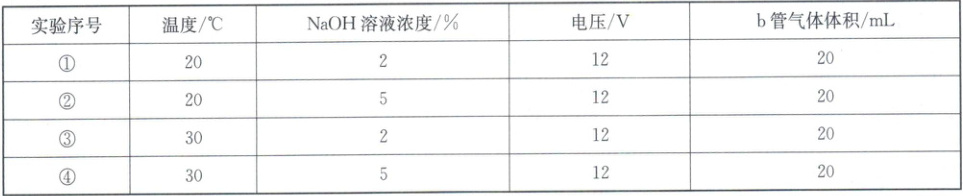 步骤 4:设计如下表所示实验,探究温度和 NaOH 溶液浓度对电解水反应速率的影响。a 管数据随时间的变化如图乙。