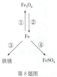8. (2025·市中区一模)某同学绘制了含铁元素的部分物质转化关系图(图中表示一种物质可以转化为另一种物质,部分反应物、生成物及反应条件已略去)。下列说法中,正确的是(
