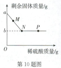 10. 向盛有 ag 铜锌混合物的烧杯中加入稀硫酸,该过程中剩余固体与加入稀硫酸的质量关系如图所示。下列说法错误的是(