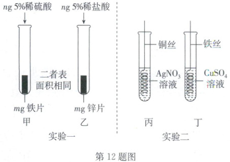 12. (2025·鄂州一模)如图为探究金属化学性质的两组实验。下列说法错误的是(