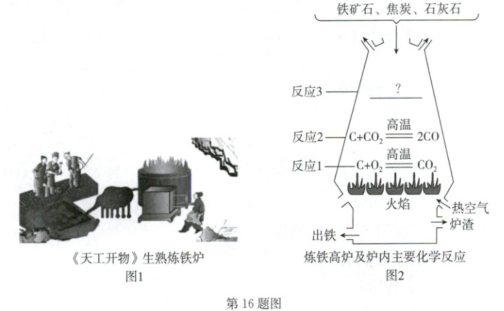 (1)图 1 展示了古代炼铁的过程,其中将生铁炼成熟铁(钢)的原理是