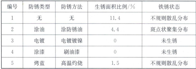 同学们利用大小相同的高纯度铁片,模拟室外的铁质雨棚,分别比较不同防锈措施的效果差异,结果如下表。