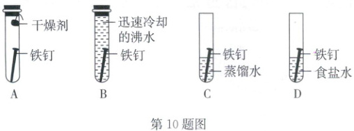 10. B 化学兴趣小组以“铁的锈蚀与防护”为主题开展项目式探究。