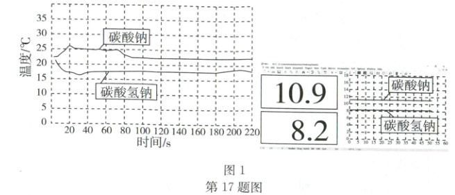 (2)小组同学又利用温度传感器和 pH 传感器分别测定碳酸钠和碳酸氢钠溶于水时的温度变化、pH 变化,实验数据如图 1: