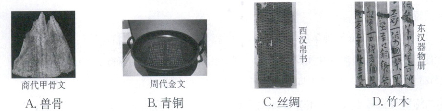 1. A (2025·武汉)汉字是中华文化的瑰宝,曾书于竹帛、镂于金石、琢于盘盂。兽骨、青铜、丝绸、竹木都曾为汉字的记录载体,其中属于合金的是(