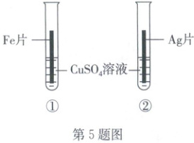 5. A 为验证铁、铜、银三种金属的活动性顺序,小东设计了如图所示的两个实验。下列说法正确的是(