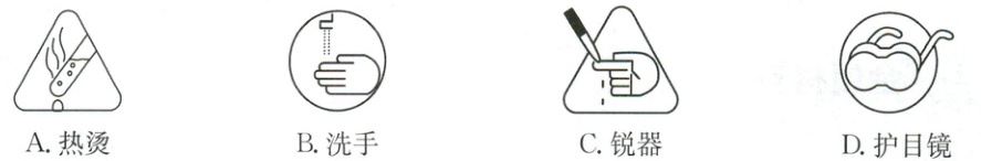 8. A 下列是与实验安全有关的图标及说明。在完成“比较黄铜片与纯铜片硬度”这一实验时,与该实验的操作安全无关的图标是(