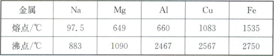 9. B 制取合金常用的方法是将两种或多种金属(或金属与非金属)加热到某一温度,使其全部熔化,再冷却成为合金。根据表中的数据判断(其他条件均满足),下列合金不宜采用上述方法制取的是(