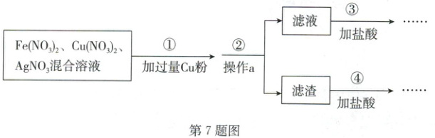 7. B 化学学习小组对某工业废水进行实验探究,部分过程如图。