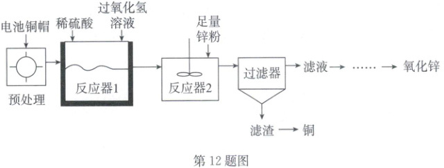 12. A (2025·深圳福田区二模)以废旧铅酸蓄电池的铜帽(主要含有Cu、Zn,忽略其他杂质)为原料,回收Cu并制备ZnO,主要工序如下。