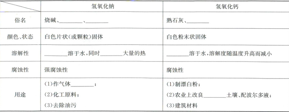 一、氢氧化钠、氢氧化钙的物理性质及用途