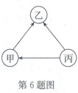 6. 现有甲、乙、丙三种金属,采用将其中一种金属分别放入另外两种金属的硫酸盐溶液中的方法进行实验,得到三种金属间的转化关系(如图所示),则三种金属的活动性由强到弱的顺序是(