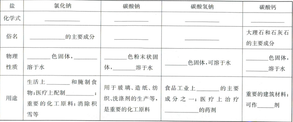盐 氯化钠 碳酸钠 碳酸氢钠 碳酸钙