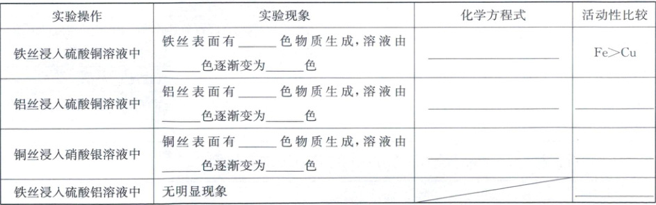 Al>Cu Cu>Ag Al>Fe Al>Fe>Cu>Ag
