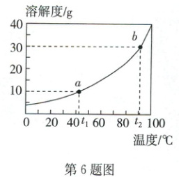 B.将 a 点的硼酸溶液升温至 t₂°C 时,仍是饱和溶液