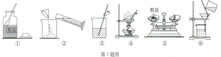 7. A (2025·包河区校级三模)如图是某兴趣小组同学进行的“粗盐中难溶性杂质的去除”实验。有关说法错误的是(