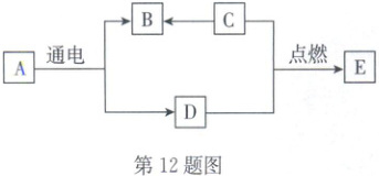 12. A A、B、C、D、E 五种物质之间的转化关系如图所示,其中 B、C、D 是单质,C 为钢的主要成分。试回答下列问题。