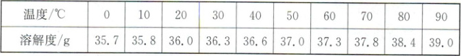 。(3) 氯化钠的溶解度数据如下表,假设冬子有 $ 358g $ 氯化钠,$ 10°C $ 时最少需用