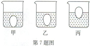 ② 同一鸡蛋在三种盐水中的浮沉状态如图。下列说法正确的是