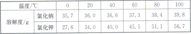 9. 中国古代采用卓筒井汲取地下卤水,卤水主要含氯化钠和氯化钾。下表是氯化钠、氯化钾的溶解度数据。