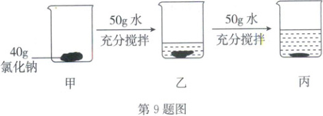 $g$;要使丙中剩余固体溶完,应至少再加入水11.1