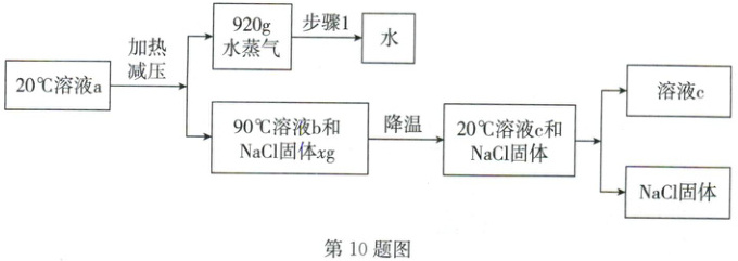$g$。溶液 $ a $ 经减压蒸发后得到溶液 $ b $ 和 $ NaCl $ 固体 $ xg $,$ x $ 的数值为10.5