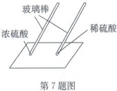 7. A 如图所示为用玻璃棒蘸硫酸溶液在白纸上写字。