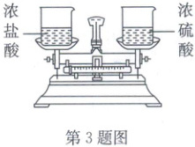 3. A 如图所示已平衡的天平两端放着两个分别盛有浓盐酸和浓硫酸的敞口烧杯,过一段时间后,天平会(