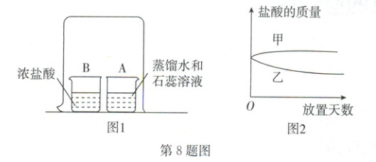 (填“甲”或“乙”),随着放置天数的增加,浓盐酸的质量发生变化的主要原因是浓盐酸有挥发性
