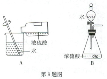 9. B 如图所示为两种稀释浓硫酸的操作,回答下列问题:
