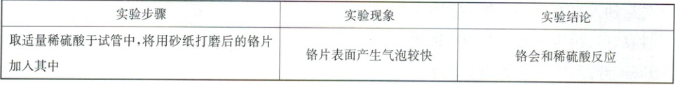 【拓展探究】用与铬片大小相等的铁片和同浓度、同体积的稀硫酸反应,观察到铁片表面产生气泡较慢,溶液变为