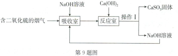 9. B 工业上可利用物料循环的方法实现烟气的脱硫处理,工艺流程如图所示。