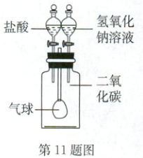 11. C 氢氧化钠溶液和二氧化碳反应没有明显现象,为验证 CO₂与 NaOH 能够发生反应,某同学按如图组装实验装置并进行实验。(提示:Na₂CO₃能与盐酸反应生成二氧化碳气体)