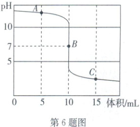 6. B 某同学用pH传感器测定稀盐酸与氢氧化钠溶液反应过程中pH的变化,测定结果如图所示,下列说法正确的是(