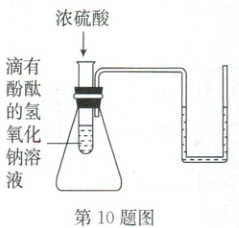 10. C 中和反应在日常生活和工农业生产中有广泛的应用。为了探究酸碱中和反应能量变化,现将浓硫酸缓慢加入滴有酚酞的氢氧化钠溶液中,如图所示。