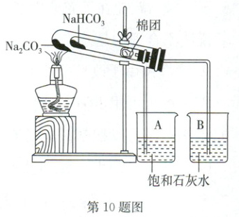 10. C 某校化学兴趣小组对苏打(${Na_{2}CO_{3}}$)和小苏打(${NaHCO_{3}}$)在生活中具有哪些用途,如何鉴别苏打和小苏打进行了如下的探究实验活动,请你参与他们的探究过程,并回答相关问题: