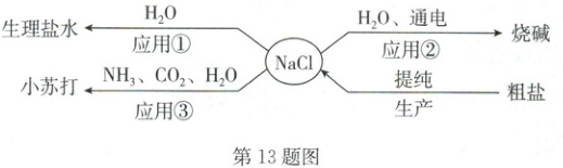 C.应用③为侯氏联合制碱法的一个步骤,判断该反应只有小苏打一种生成物