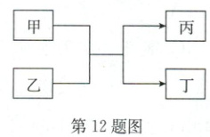 12. B (2025·宁夏)甲、乙、丙、丁是初中化学常见的物质,在一定条件下它们之间的转化关系如图所示。下列推断错误的是 ()