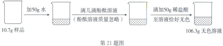 21. C 某毕业班同学去制纯碱化工厂实习,对该厂生产的纯碱产生兴趣,于是取$10.7g$纯碱样品(含有少量的氯化钠)进行如下探究,完成以下问题。